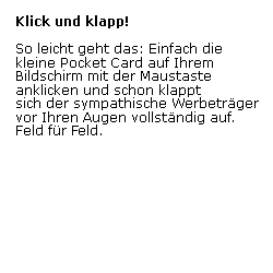 bei dieser Pocket Card im Vordergrund. Bedingt durch die